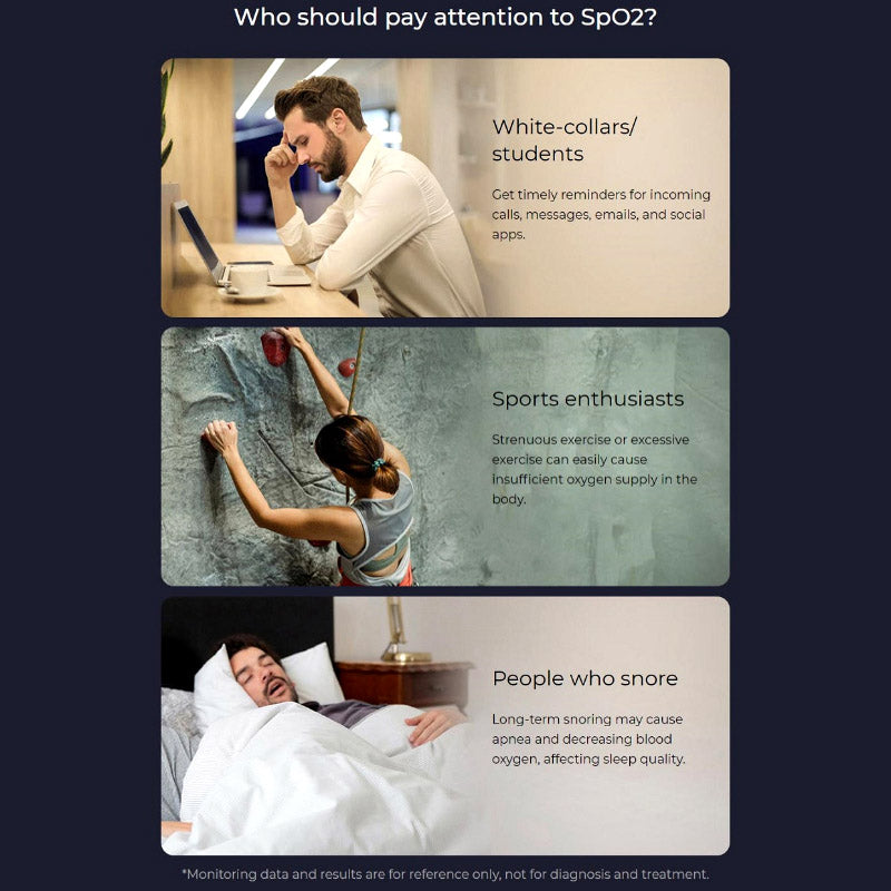Stay connected to your health with advanced features like SpO2 tracking, providing real-time insights into your blood oxygen saturation levels. The upgraded optical heart rate sensor, combined with a smart health algorithm, ensures 24-hour health monitoring, allowing you to keep a close eye on your physical well-being.